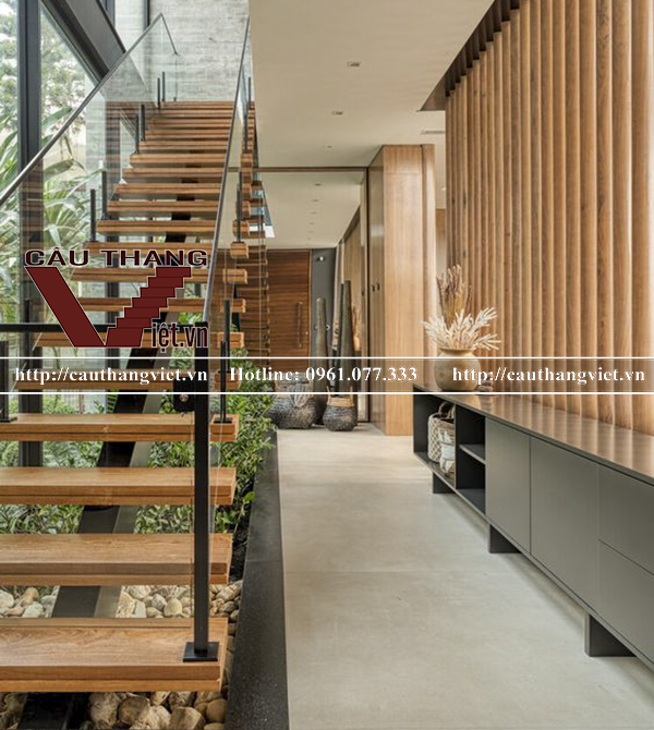 2.3. Các mẫu cầu thang xương bay với tiểu cảnh